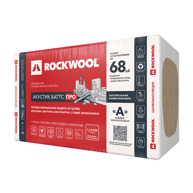 АКУСТИК БАТТС ПРО — звукопоглощающие плиты, изготовленные из каменной ваты ROCKWOOL. Плотность материала (60 кг/м3), хаотичное расположение волокон и однородная структура плиты, как следствие уникальной технологии производства, обеспечивают отличные звукопоглощающие свойства (что подтверждено тестами) и отсутствие усадки в течение всего периода эксплуатации. Применение продукта в конструкциях обеспечивает соответствие российским строительным нормам, а также пожаробезопасность и экологический комфорт.